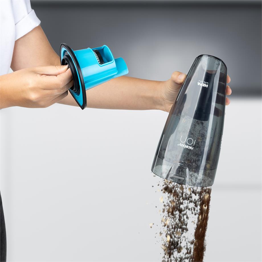 Niceboy ION Hurricane R3 22,2 V WET & DRY je navržen s ohledem na snadnou údržbu s minimálním úsilím. Veškeré nečistoty jsou spolehlivě zachyceny velkou prachovou nádobou o objemu 0,5 litru. Po dokončení úklidu stačí stisknout tlačítko a nečistoty jednoduše vysypat do odpadkového koše. Navíc, s omyvatelným filtrem je údržba doslova hračkou. Stačí ho jen vyjmout a opláchnout pod tekoucí vodou, což nejenže prodlužuje životnost filtru, ale také zajišťuje, že váš vysavač bude vždy připraven k optimálnímu výkonu.