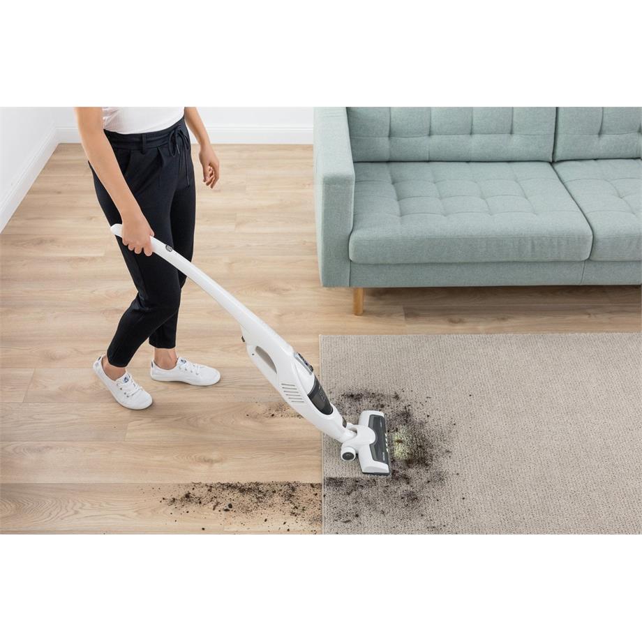 - Skvělá ovladatelnost a snadné manévrování okolo nábytku díky hubici vysavače otočné v rozsahu 180° a nízké hmotnosti vysavače