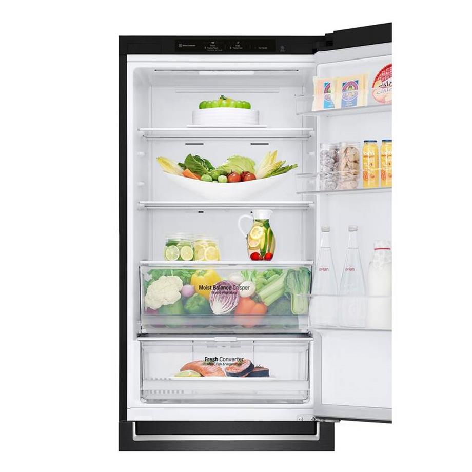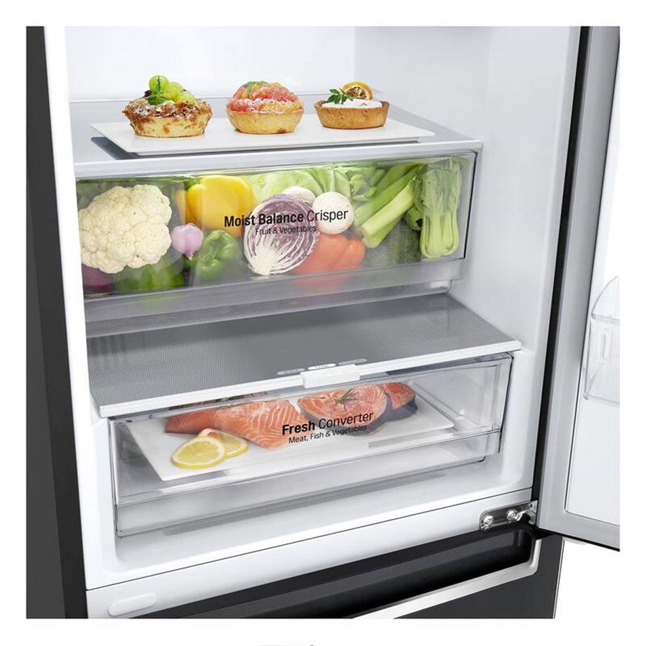 beznámrazová chladnička s mrazákem • výška 186 cm • objem chladničky 234 l / mrazničky 107 l • energetická třída C • 10 let záruka na kompresor • systém Door Cooling+™ – rychlejší obnova teploty • LG Total No Frost – beznámrazová technologie • Multi Air Flow – rozšířené proudění chladného vzduchu • Fresh Converter – udržení optimální teploty • chytrá diagnostika • interní LED displej • možnost změny směru otevírání dveří • hlučnost 35 dB • V × Š × H: 186 × 59,5 × 68,2 cm