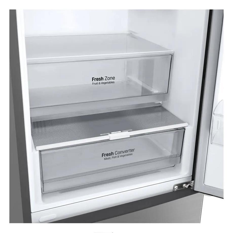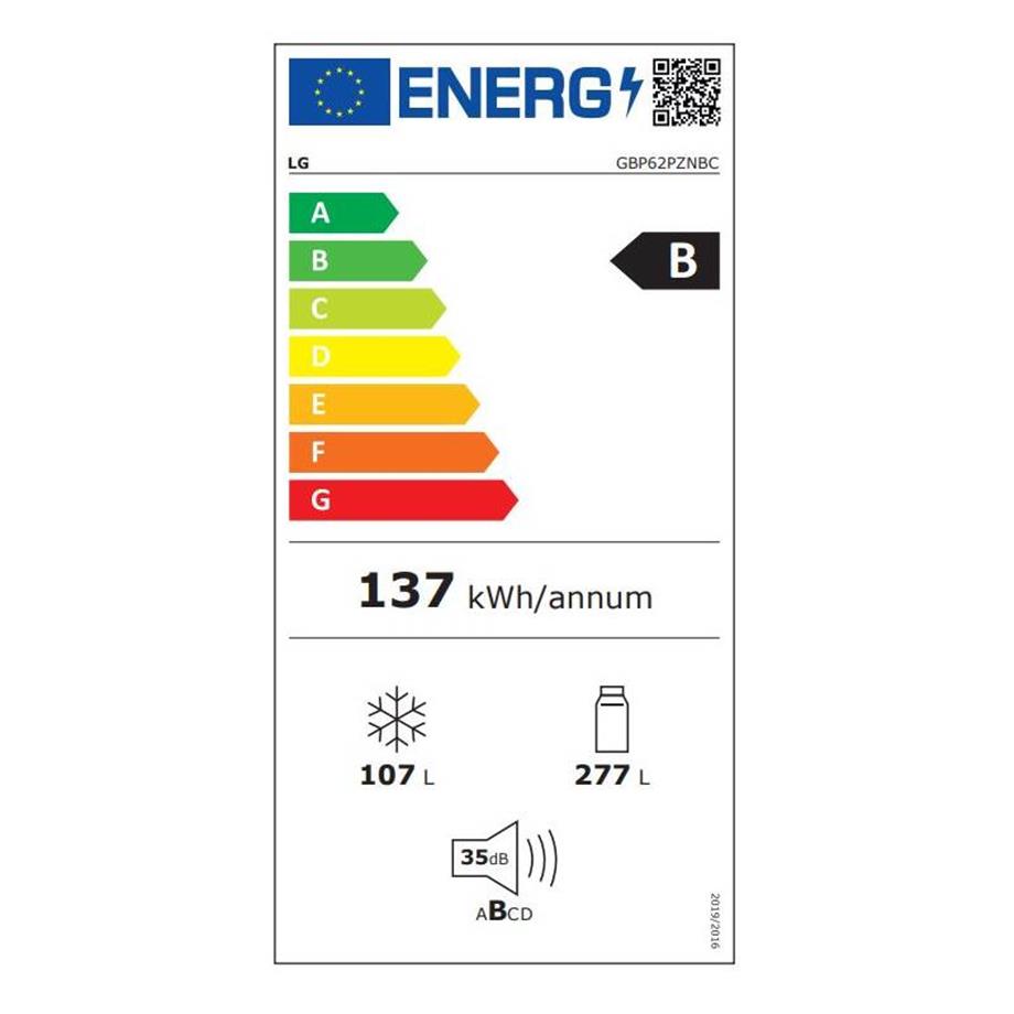 Volně stojící kombinovaná chladnička v energetické třídě B a platinově stříbrném provedení s celkovým objemem 384 l, elektronickým ovládáním a úsporným LED osvětlením. LG GBP62PZNBC disponuje lineárním kompresorem, beznámrazovou technologií Total No Frost a rozšířeným prouděním chladného vzduchu Multi Air Flow.