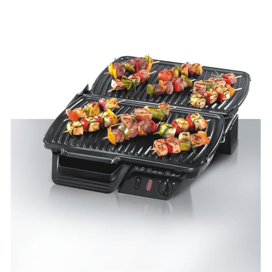 Skvělý kontaktní gril Tefal GC 305012 UC 600 v kovové povrchové úpravě. Je velmi jednoduchý na údržbu díky vyjmutelným grilovacím plátům a odkapávací misce na šťávu.