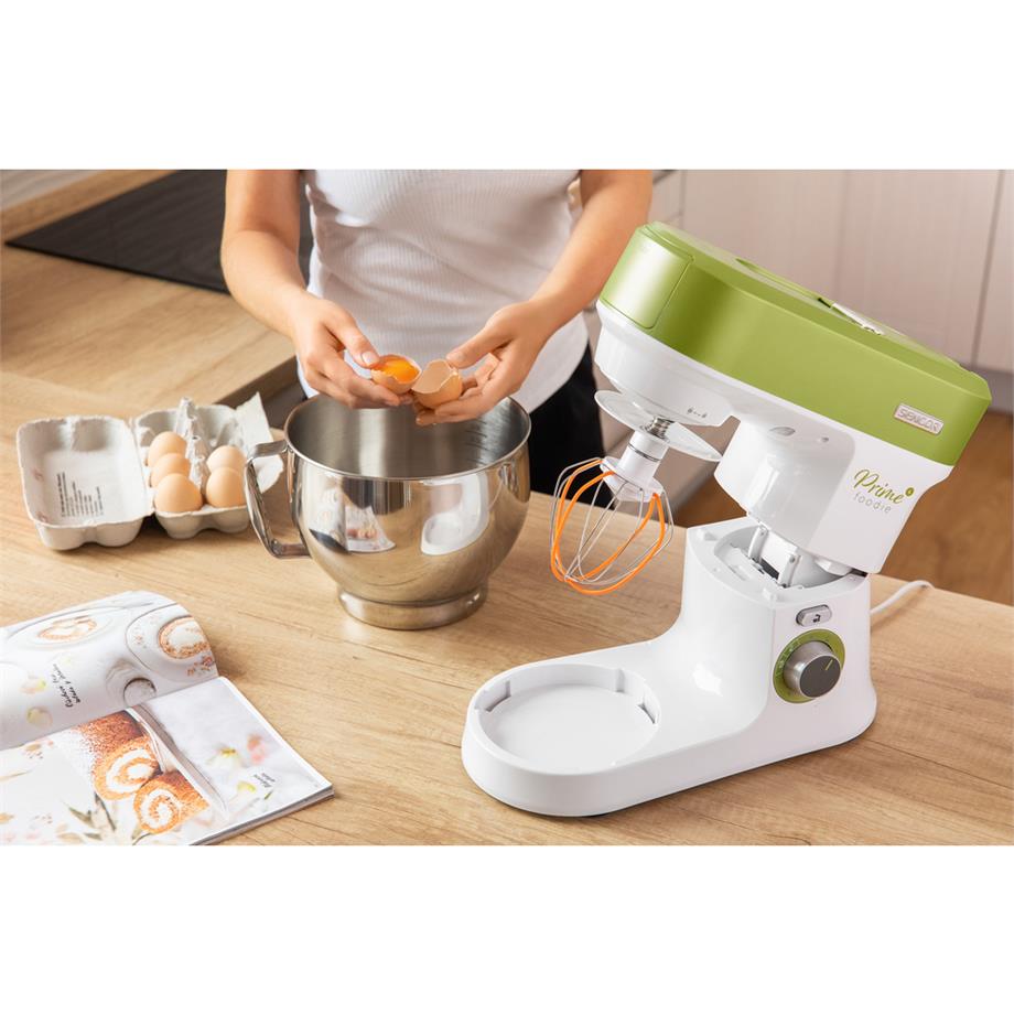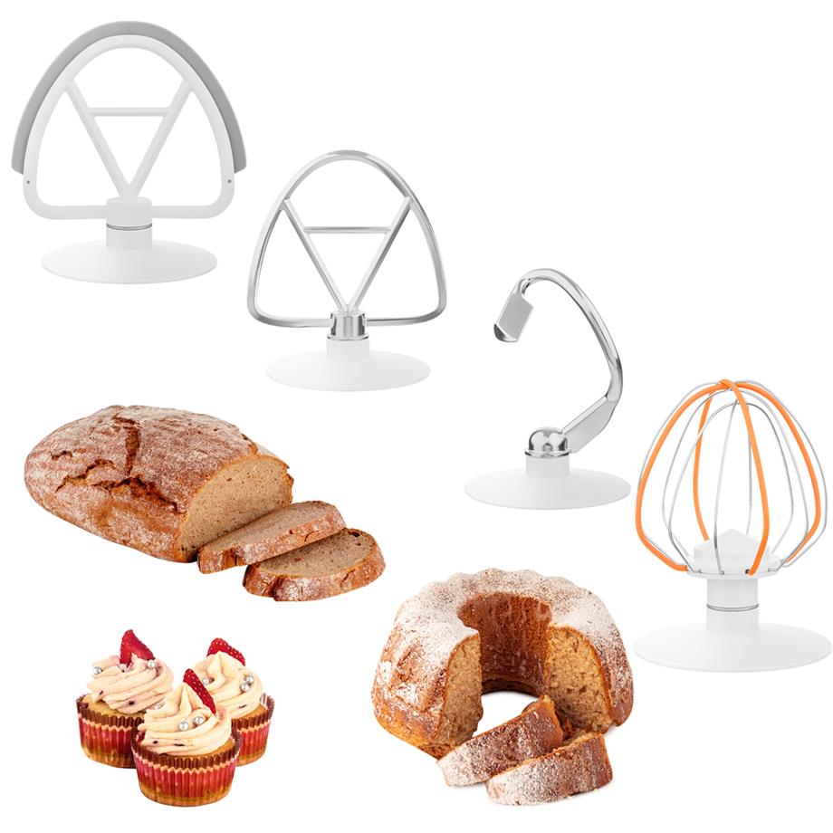 Šlehací balónová metla je vhodná ke šlehání vajec nebo vaječných bílků, smetany či pudinku. S míchací metlou hravě ušleháte lehká těsta, polevy, krémy, náplně do dortů. Pomůže i s těstem na dort, piškotovým těstěm či směsí na palačinky. S hutnými těsty si bez obav poradí odolný hnětací hák. Robot vlastní i pružnou míchací metlu, jež se vám bude hodit k mísení dezertových krémů, instantních pudinků, majonéz, piškotového těsta.