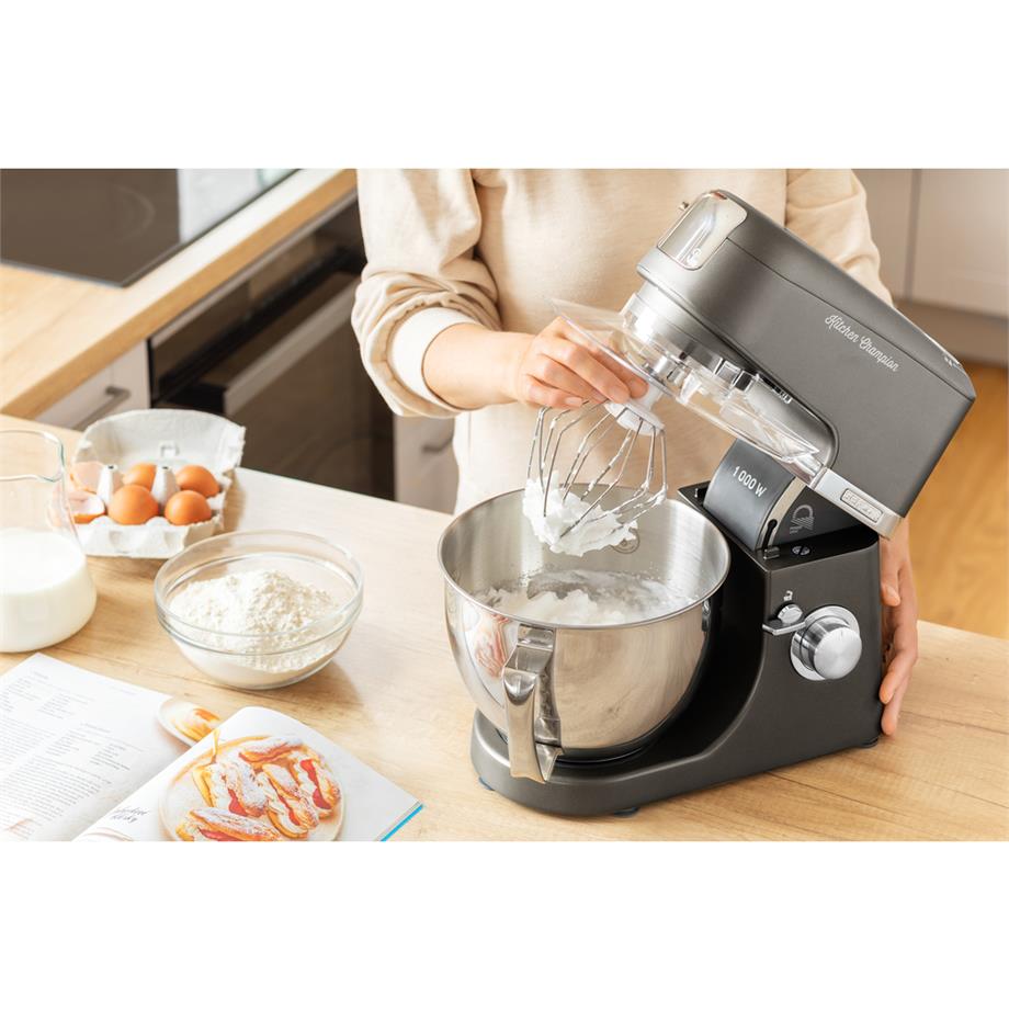 Kuchyňský robot s příkonem 1000 W a s nerezovou mísou o objemu 4,5 litru s měrnou stupnicí. SENCOR STM 6378BK robustní celokovové tělo s kovovými převody, variabilní regulaci otáček s pozvolným startem a 8 rychlostními stupni a LED osvětlení mixovací nádoby.