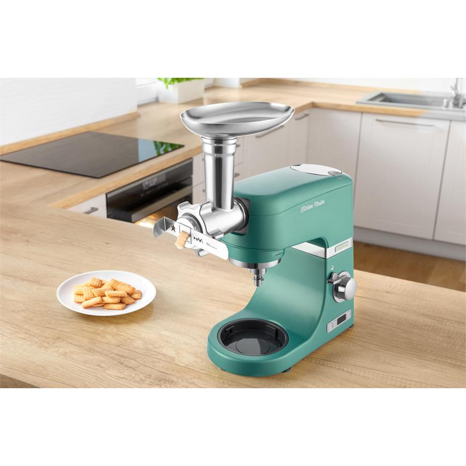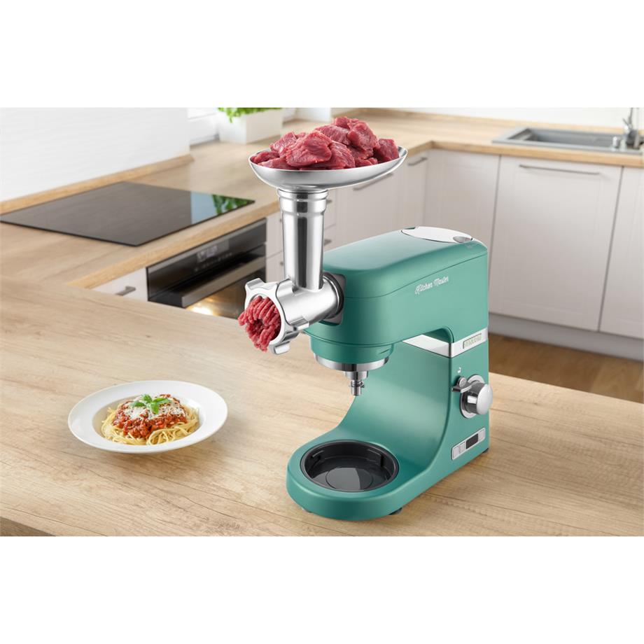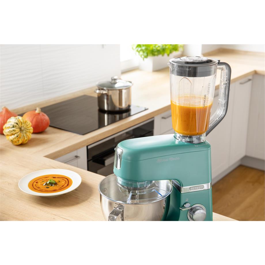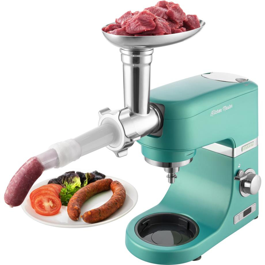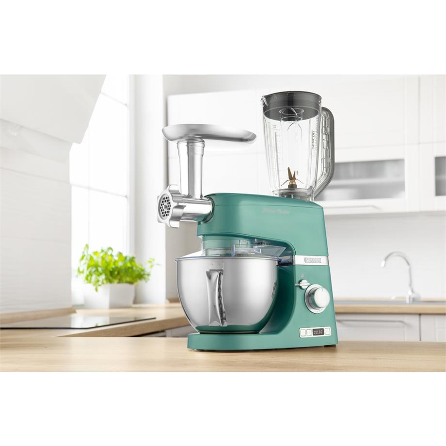 Kuchyňský robot extrémně výkonným 1000W motorem. SENCOR STM 7871GR je vybaven robusním celokovovým tělem s kovovými převody a 3 výstupovou konstrukcí. Otáčky můžete variabilně regulovat a praktickou funkcí je pozvolný start. Součástí balení je bohaté příslušenství.