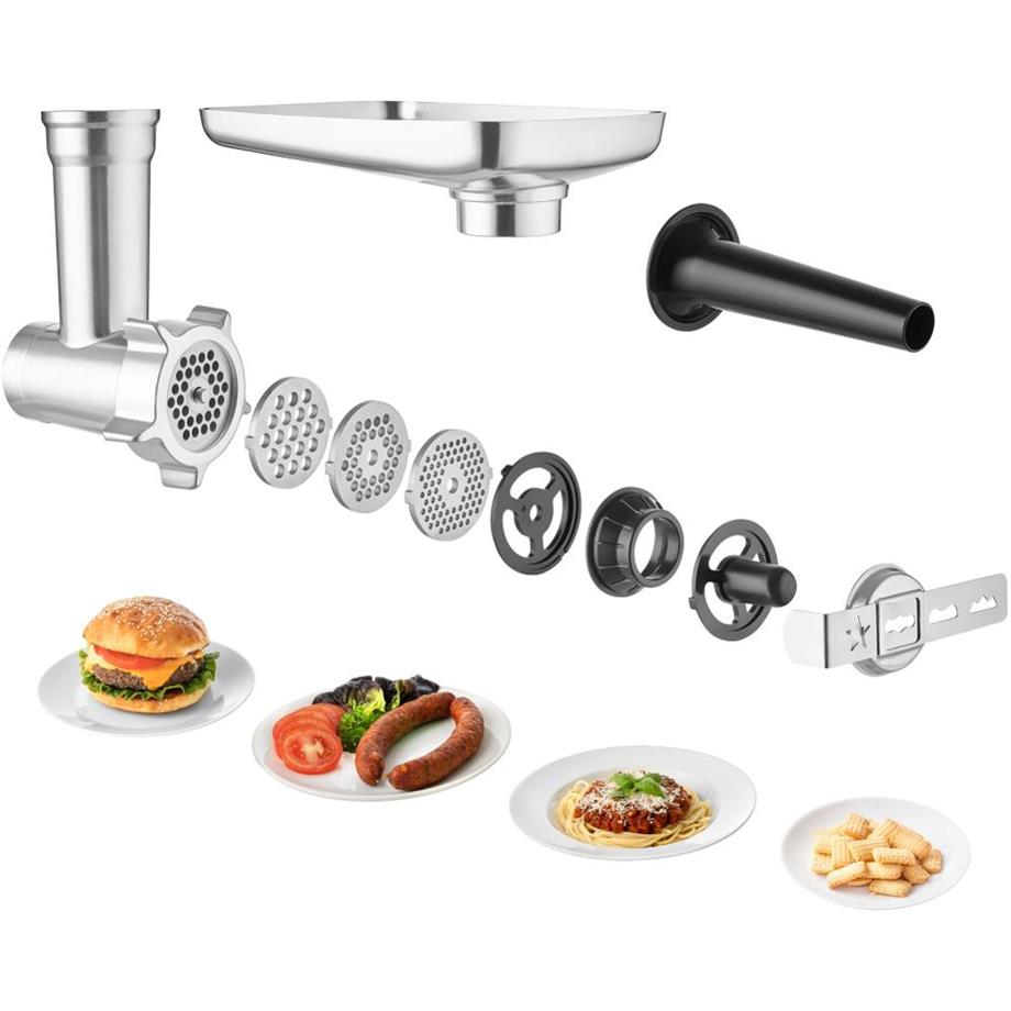 Ve výbavě kuchyňského robotu Sencor STM 8970 naleznete praktický mlýnek na maso s možností volby hrubosti mletí ve 3 úrovních. Namele maso zcela jemně na tatarák, ale i připraví hrubě namleté maso na výrobu burgerů. S mlýnkem a jeho nástavci si můžete vytvořit domácí klobásky i si vytlačit sladké cukroví pomocí tvořítka. Vychytávka v podobě formovače vám umožní připravit maso na kebab.