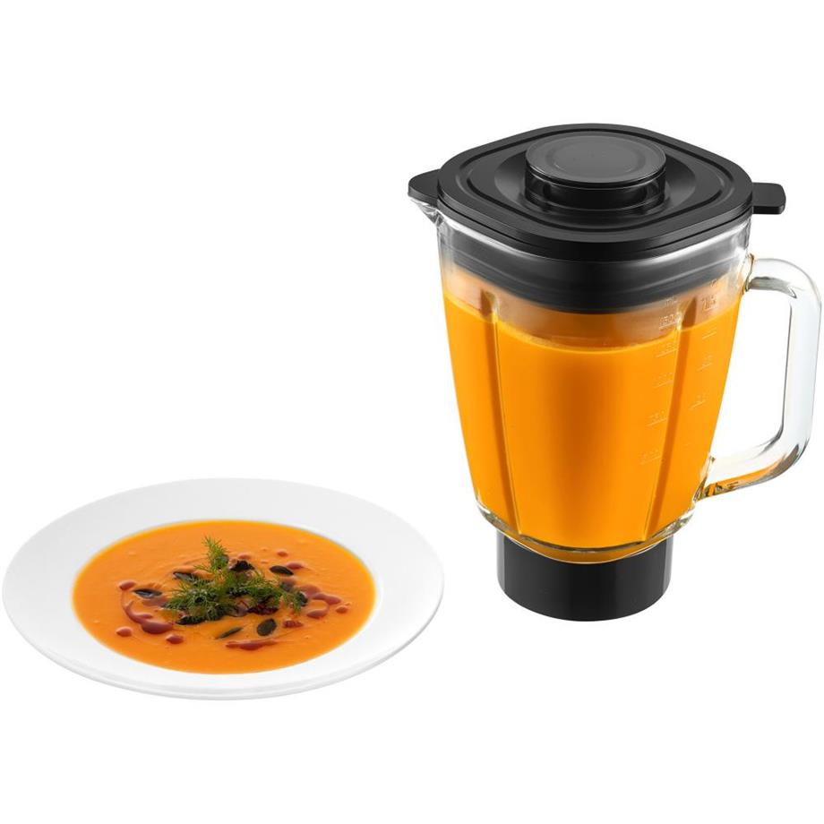 V mixovací 1,5l velké nádobě pohodlně rozmixujete dohladka omáčky, krémové polévky i příkrmy pro děti. Nemusíte se bát vkládát ještě teplé ingredience. Zároveň je skvělým pomocníkem při přípravě koktejlů a různých druhů smoothie.