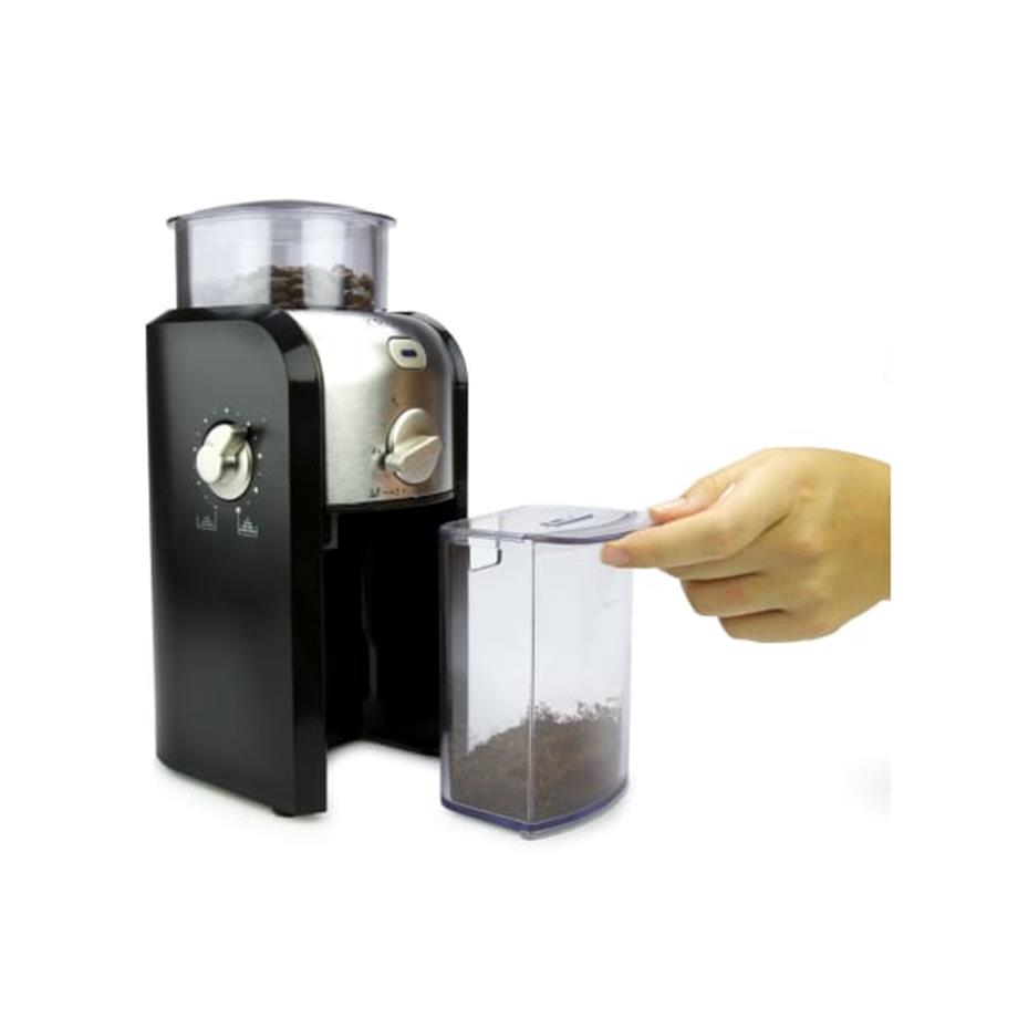 - velkokapacitní průhledná nádoba na mletou kávu s ochranným víčkem