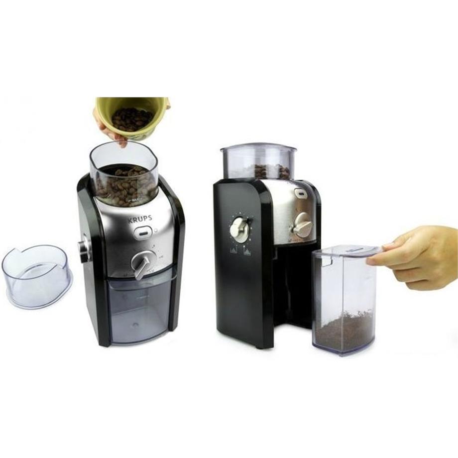 Mlýnek na kávu KRUPS vám umožní vychutnat si všechny vaše oblíbené kávové nápoje s lahodnou chutí díky stejnoměrné kvalitě mletí. Jeho 17 nastavení vám umožňuje zvolit si hrubost mletí, která je ideální pro požadovaný způsob přípravy výrazné aromatické kávy plné chuti, od jemného mletí po hrubé. Pomocí voliče počtu šálků můžete dosáhnout přesného množství namleté kávy od 2 do 12 šálků. Tento vynikající elektrický mlýnek na kávu se dodává s velkoobjemovým zásobníkem na kávová zrna s bezpečnostním víkem a jeho mlecí kámen i nádobu na namletou kávu lze pro snadné čištění vyjmout.