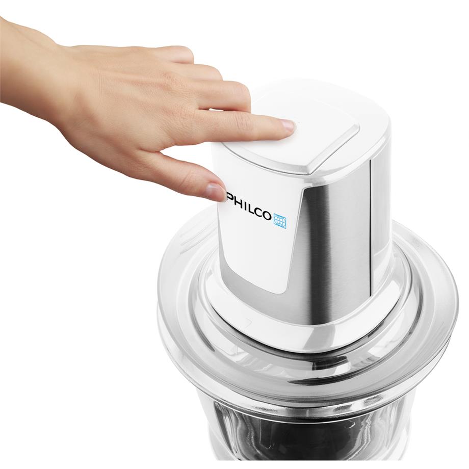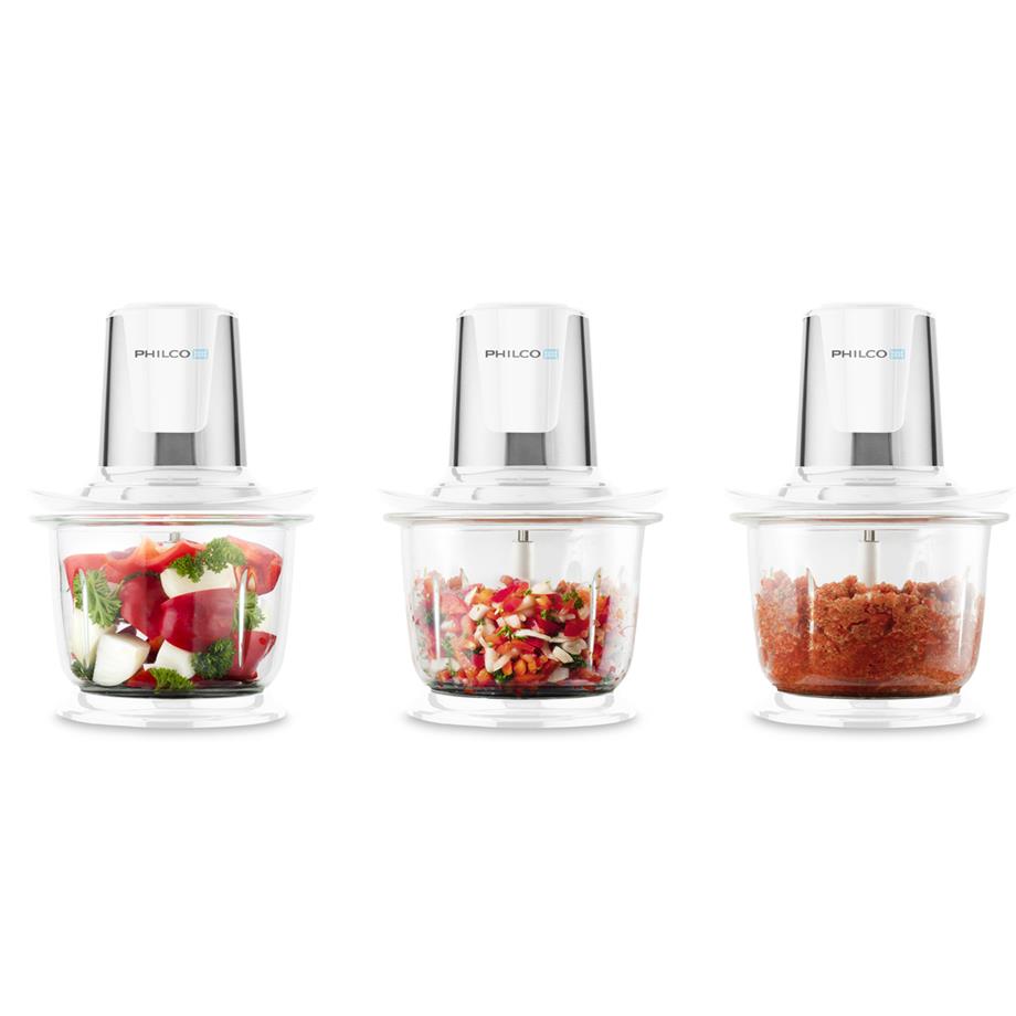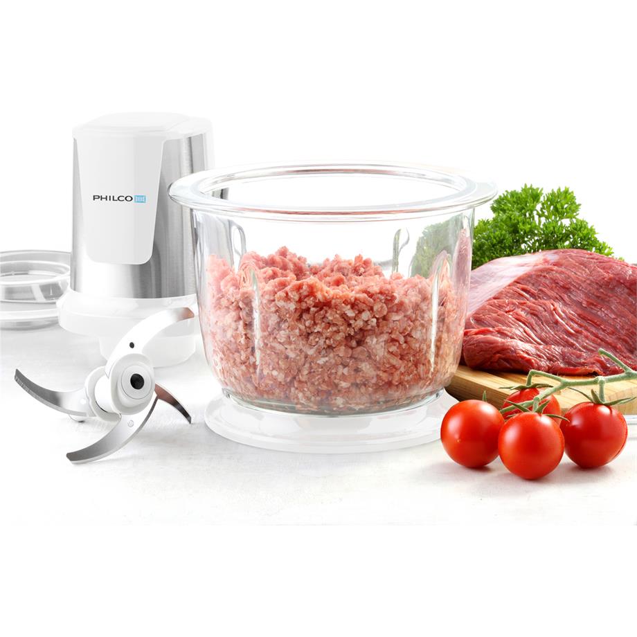 Kuchyňský sekáček Philco PHHB 6910 s příkonem motoru 400 W, je osazen 4 precizně nabroušenými ocelovými noži, které si hravě poradí s ořechy, masem, sýrem i ledem. Osvědčí se při přípravě ovocných či zeleninových přesnídávek nebo při výrobě domácí paštiky.