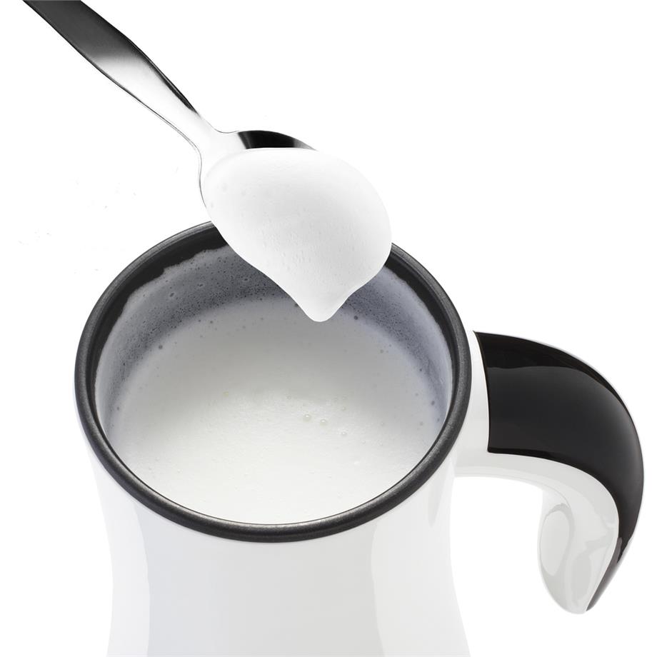 Ať už milujete kávu s hustou mléčnou pěnou, nebo si rádi dopřejete hrnek teplého mléka před spaním, právě pro vás byl stvořen tento napěňovač mléka s možností volby teplého či studeného napěnění nebo pouze ohřevu mléka. Čistý design evokující tradiční konvičky na mléko je opatřen průhledným víkem pro lepší kontrolu procesu napěnění.