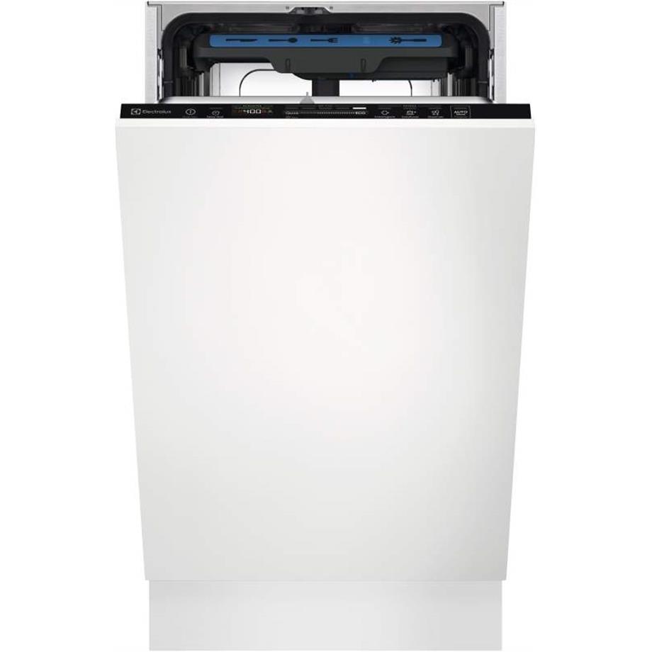 Plně integrovaná myčka nádobí Electrolux 700 FLEX MaxiFlex EEM63310L je zařazena do energetické třídy D. Ovládací panel QuickSelect je umístěn shora. Funkce Beam on floor vizuálně informuje o stavu mycího programu pomocí světelného paprsku. Technologie Airdrie využívá přirozené proudění vzduchu pro ukončení sušení. Myčka nádobí Electrolux 700 FLEX MaxiFlex EEM63310L nabízí 8 mycích programů s možností odložení startu o 1 - 24 hod. Je vybavena i množstvím dalších funkcí: indikátor nedostatky leštidla a soli. Na ukončení programu upozorní zvukový signál. Její kapacita pro mytí je 10 sad nádobí. Vnitřní výbavu tvoří: výškově nastavitelný horní koš - má sladacie poličky na šálky a plastové držadlo. Dolní koš má pevné talířové trny a plastové držadlo. Zásuvka MaxiFlex slouží pro ukládání příborů a kuchyňského náčiní. Satelitní mycí rameno zajistí zářící čistotu nádobí.