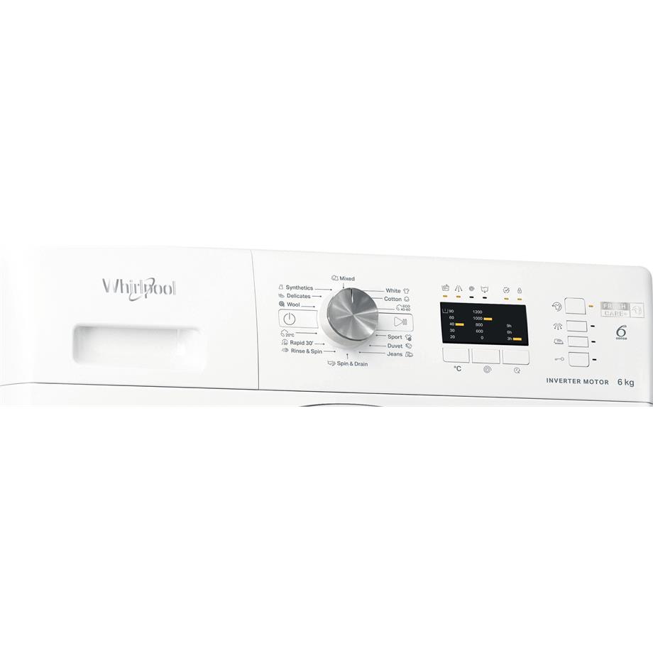 Přednosti této volně stojící pračky Whirlpool: bílá barva. Rychlé, úsporné: 1200 otáčky za minutu odstřeďování. Exkluzivní technologie 6. SMYSL, která dynamicky přizpůsobuje nastavení každé konkrétní náplni a zajišťuje ideální péči o všechny vaše tkaniny. Rychlé vyprání už za 30 minut.
