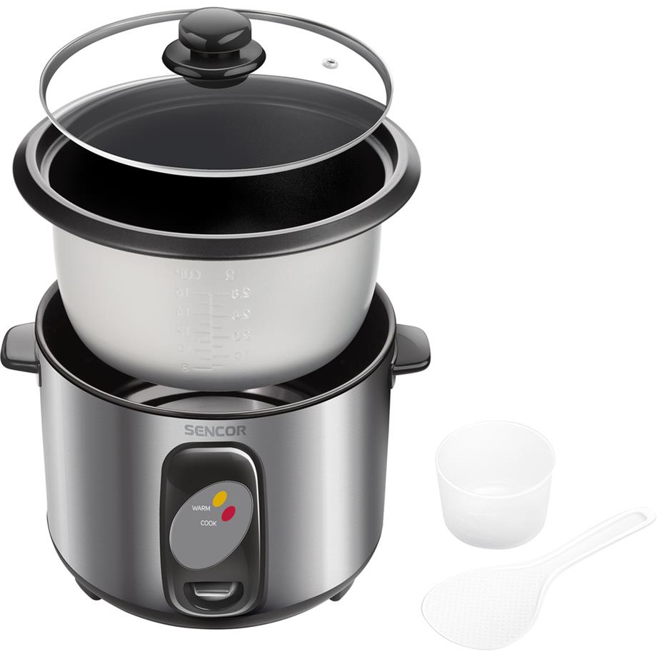Elektrický hrnec, rýžovar Sencor SRM 1000SS. Objem 1 litr. Speciální hrnec na vaření rýže, pracuje na principu vaření v páře, vnější plášť z nerezu. Vhodný pro přípravu všech druhů rýže včetně rýže na Sushi. Automatické vypnutí po dovaření a přepnutí na funkci Keep Warm.
