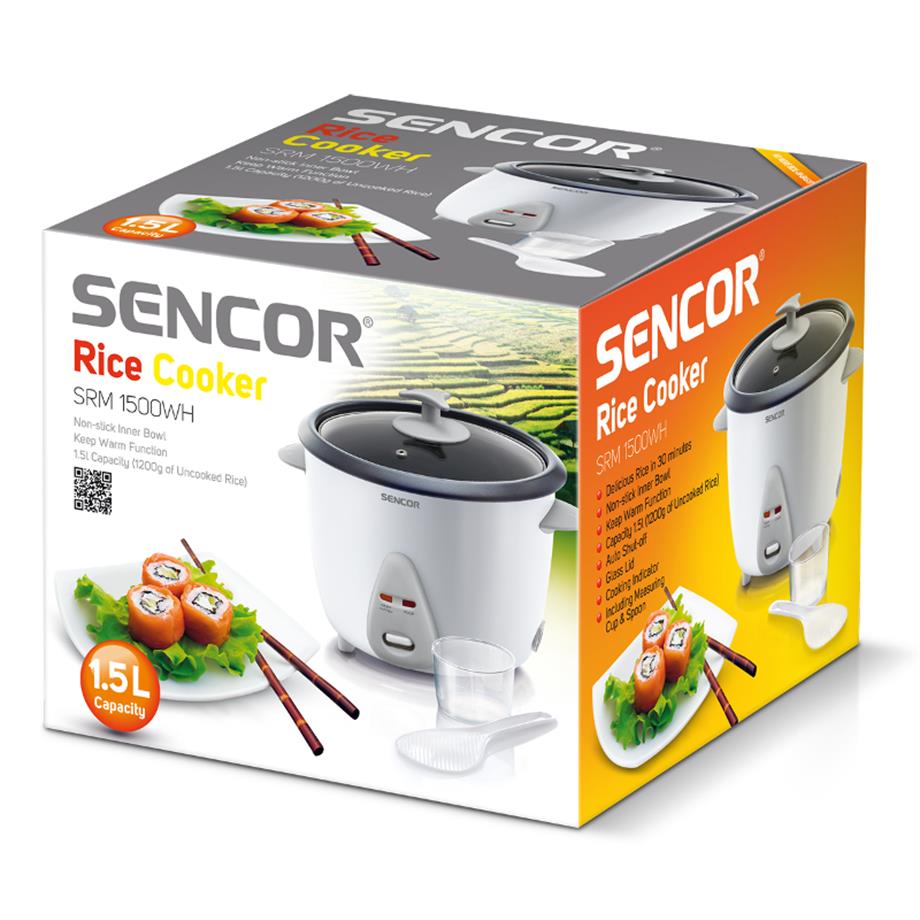 Speciální hrnec pro vaření rýže Sencor SRM 1500 WH, s plně automatickým provozem je vhodný pro přípravu všech druhů rýže včetně rýže na Sushi. Hrnec má automatické vypnutí po dovaření a přepnutí na funkci Keep Warm, která udrží rýži teplou až 6 hodin.