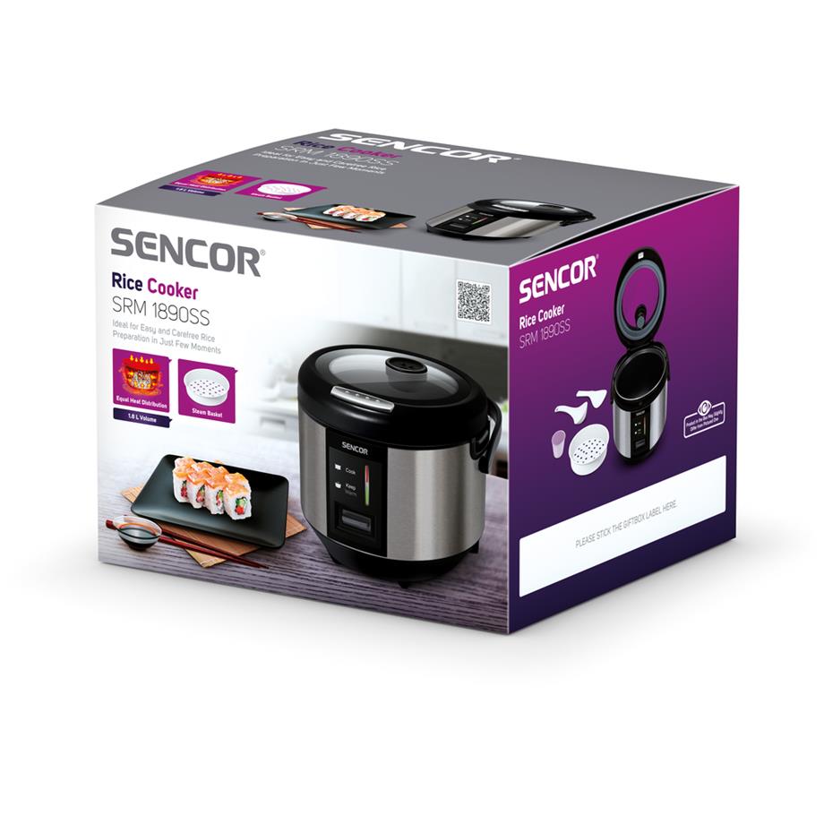 Rýžovar o objemu 1,8 l v elegantním nerezovém provedení s technologií rovnoměrného rozvodu tepla. Sencor SRM 1890SS disponuje speciálním ventilem pro únik páry a efektivně zabraňuje nechtěnému přetékání při vaření.