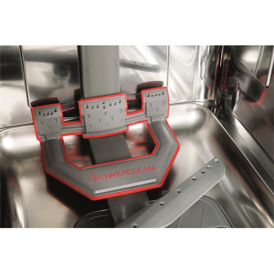 - PowerClean – mytí silně znečištěného nádobí v prostoru spodního koše vysokým tlakem vody; využitím zóny PowerClean se kapacita spodního koše zvýší o 30 %