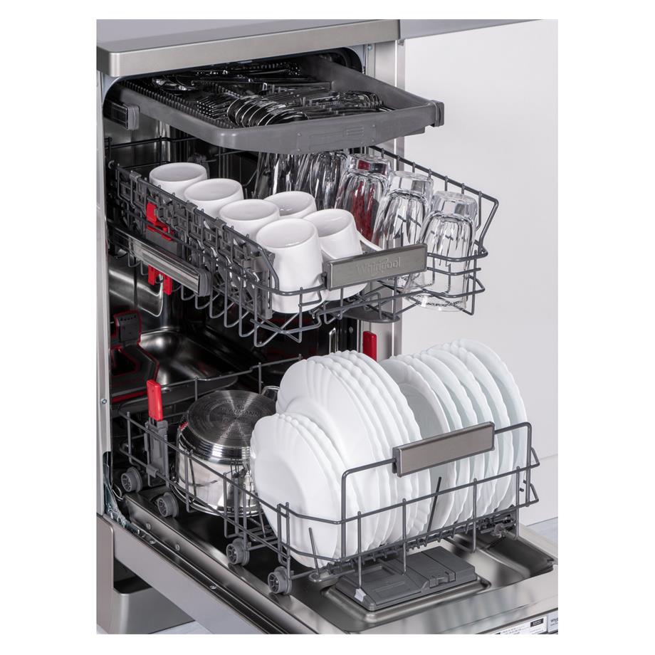 Volně stojící myčka v nerezovém provedení. Whirlpool WSFO 3O34 PF X až pro 10 sad nádobí vyniká senzorovou technologií 6. smysl PowerClean, která zajistí co nejnižší spotřebu vody, energie i času.