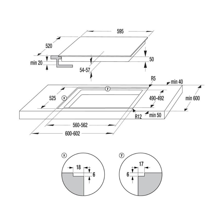 Rozměry k zabudování (šxvxh): 56 × 6,7 × 49 cm