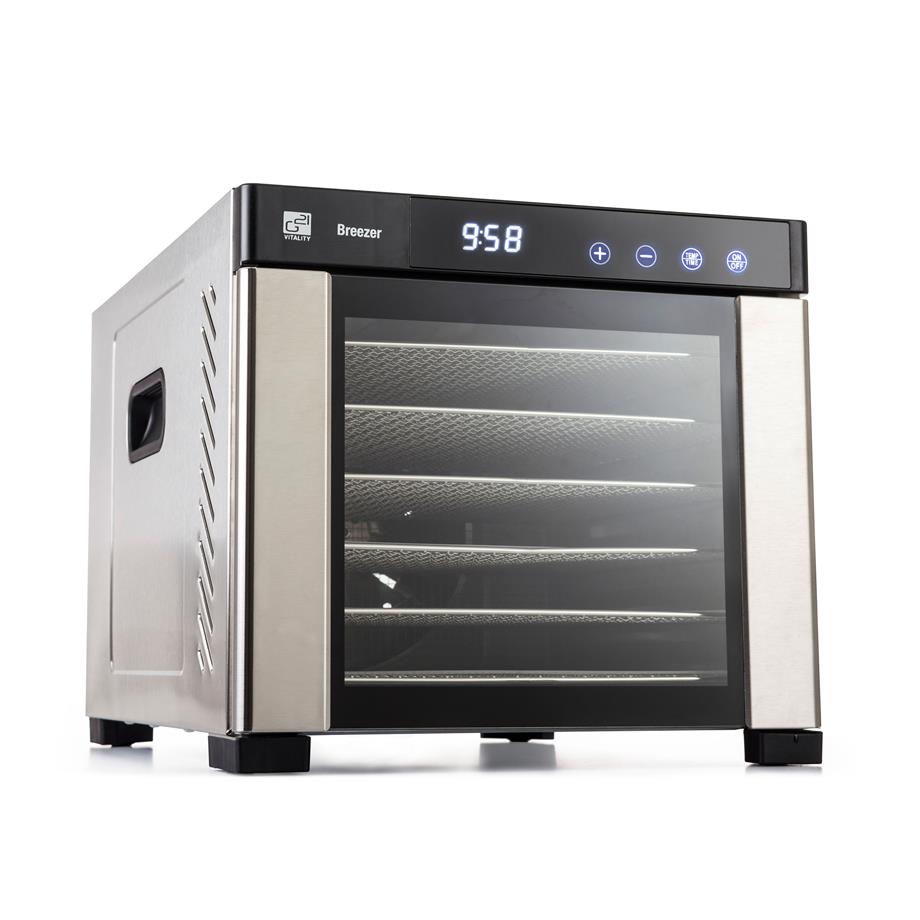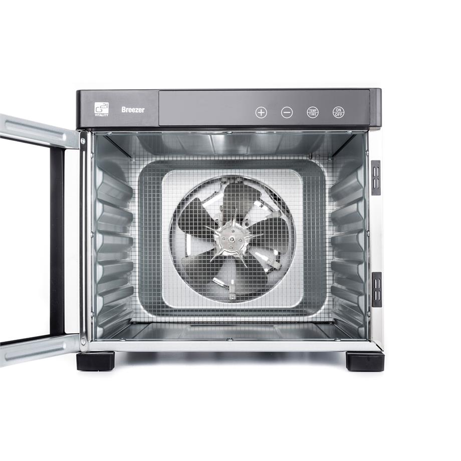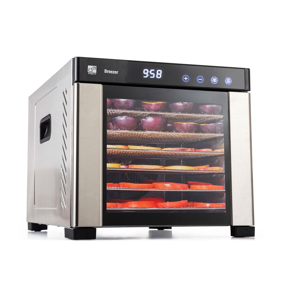 Horizontální sušička potravin G21 Breezer je menší sestrou sušičky G21 Mistral. Se svými 6 nerezovými sušícími tácy a 6 jemnými sušícími vložkami je díky kompaktnějšímu provedení ideální pro domácí použití nebo do provozů s menší pracovní plochou. Veškeré ovoce, zeleninu, bylinky, houby i maso usuší dokonale, rovnoměrně a jednoduše. Nemusíte přeskládávat plata ani otáčet suroviny. Dokonce se nemusíte zabývat ani údržbou sušičky, díky použitým materiálům je odolná a snadno se čistí.