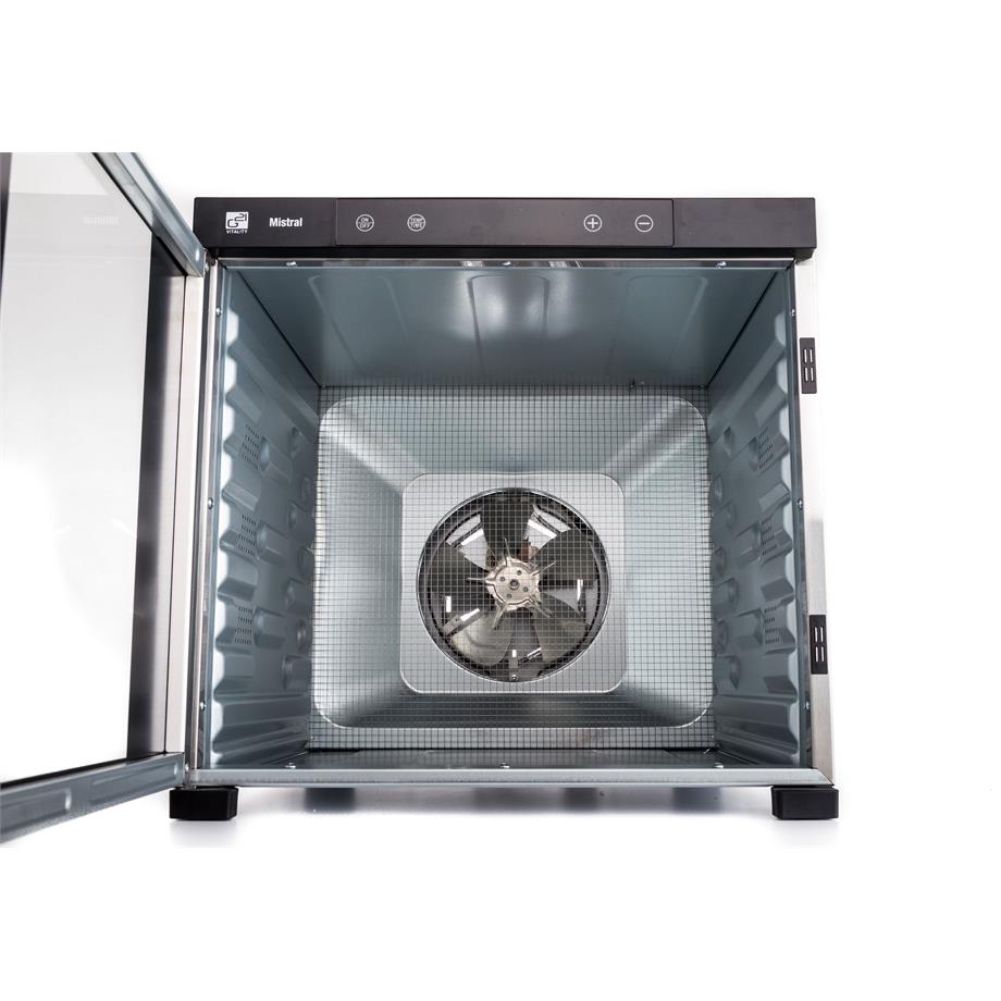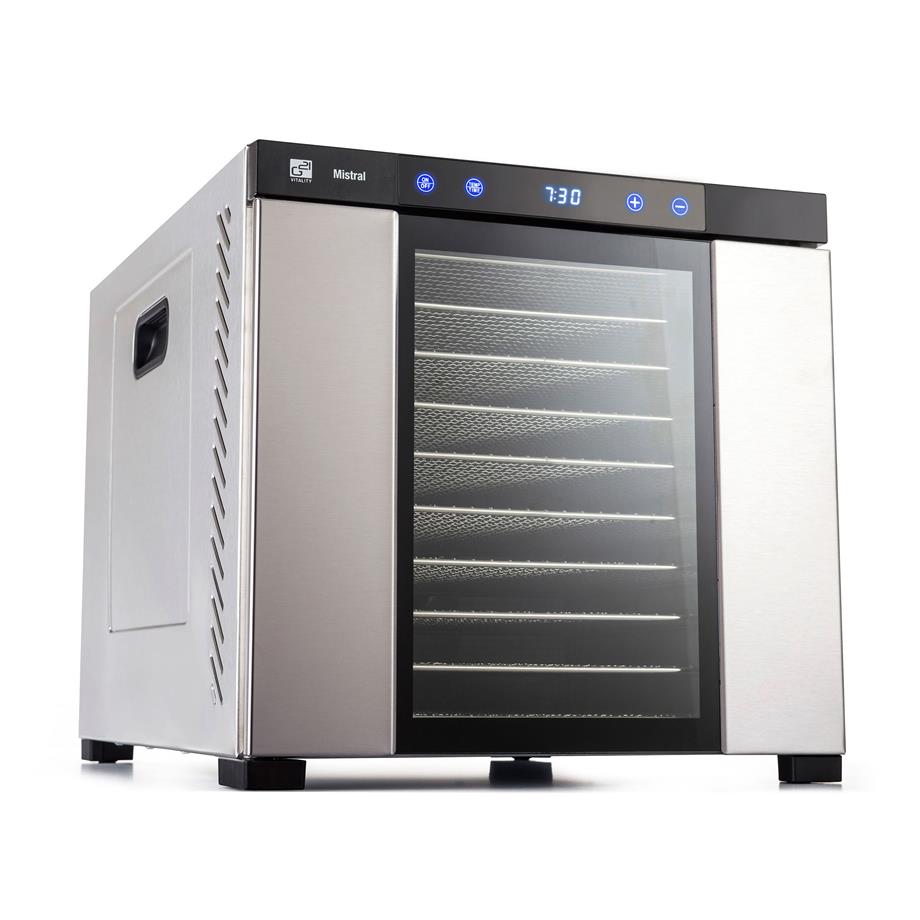 Řídící jednotka sušičky G21 Mistral má dokonale řešenou elektroniku, ovládání je intuitivní a snadné. Časovač hlídá dobu přípravy a po skončení sušení sušičku sám vypne. Regulátor teploty vám dává absolutní kontrolu nad sušícím procesem. Usušte si to, co chcete, přesně tak, jak to chcete.