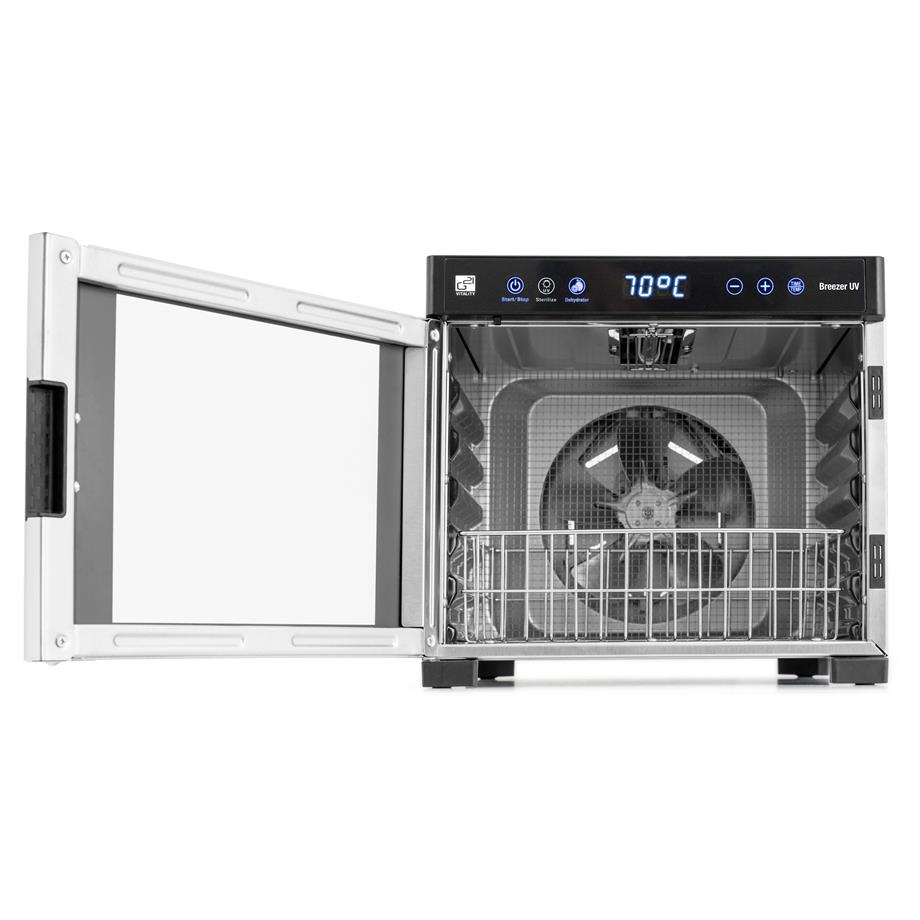 Sušička potravin G21 Breezer je vybavena prémiovou UV dezinfekční lampou, která zajišťuje rychlou a efektivní sterilizaci až 99 % bakterií během pouhých 10 minut. S průměrnou životností 5 000 hodin vám tato UV lampa poskytne dlouhodobou ochranu a bezpečí. Dezinfikovat můžete jakékoliv předměty, které se do sušičky vejdou – od kojeneckých lahví a dudlíků až po běžné domácí nebo osobní potřeby, jako jsou zubní kartáčky, nůžky, pinzety nebo dózy na potraviny. Součástí balení je také praktický nerezový košík.
