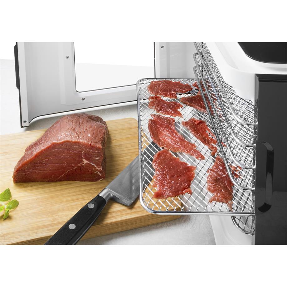 Perfektního výsledku dosáhnete díky silnému motoru, který dosahuje příkonu 400 W a účinně rozproudí teplý vzduch rovnoměrně v celém vnitřním prostoru sušičky. Během provozu se nebudete muset starat o nic, kromě počátečního nastavení doby přípravy a teploty.