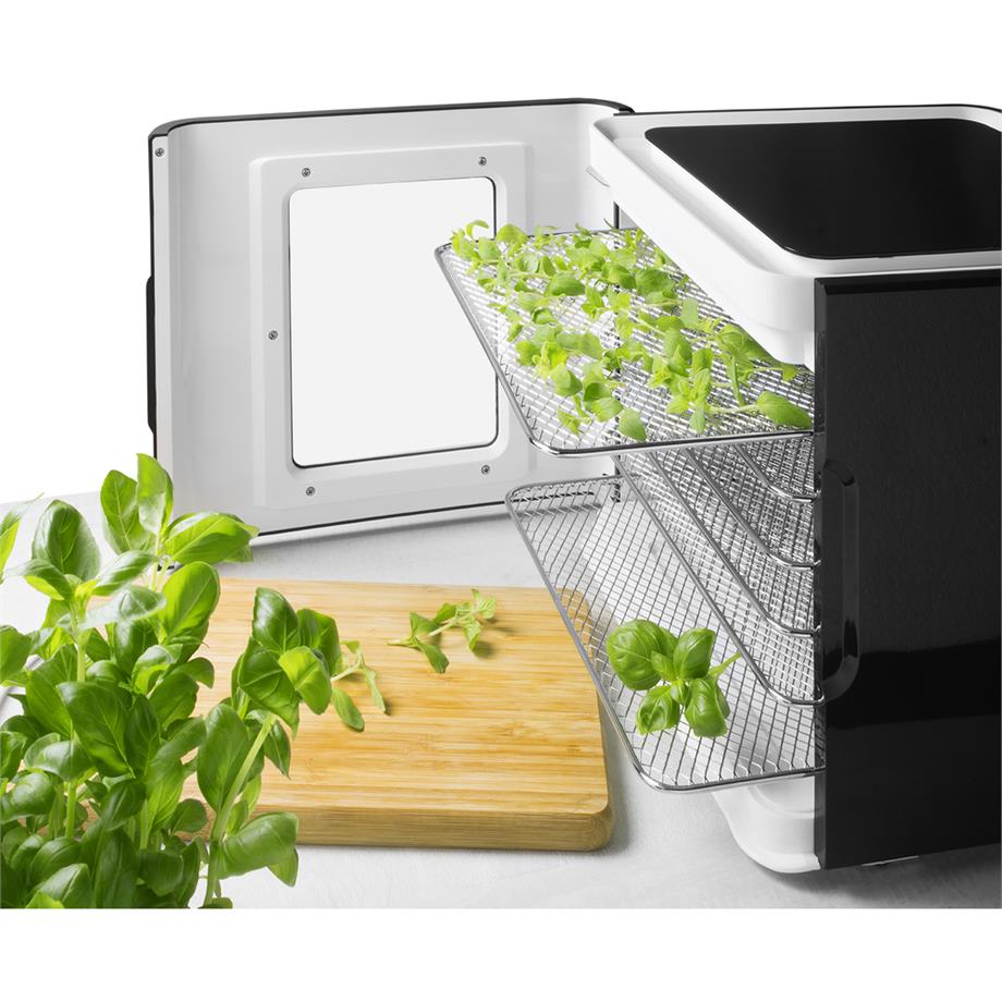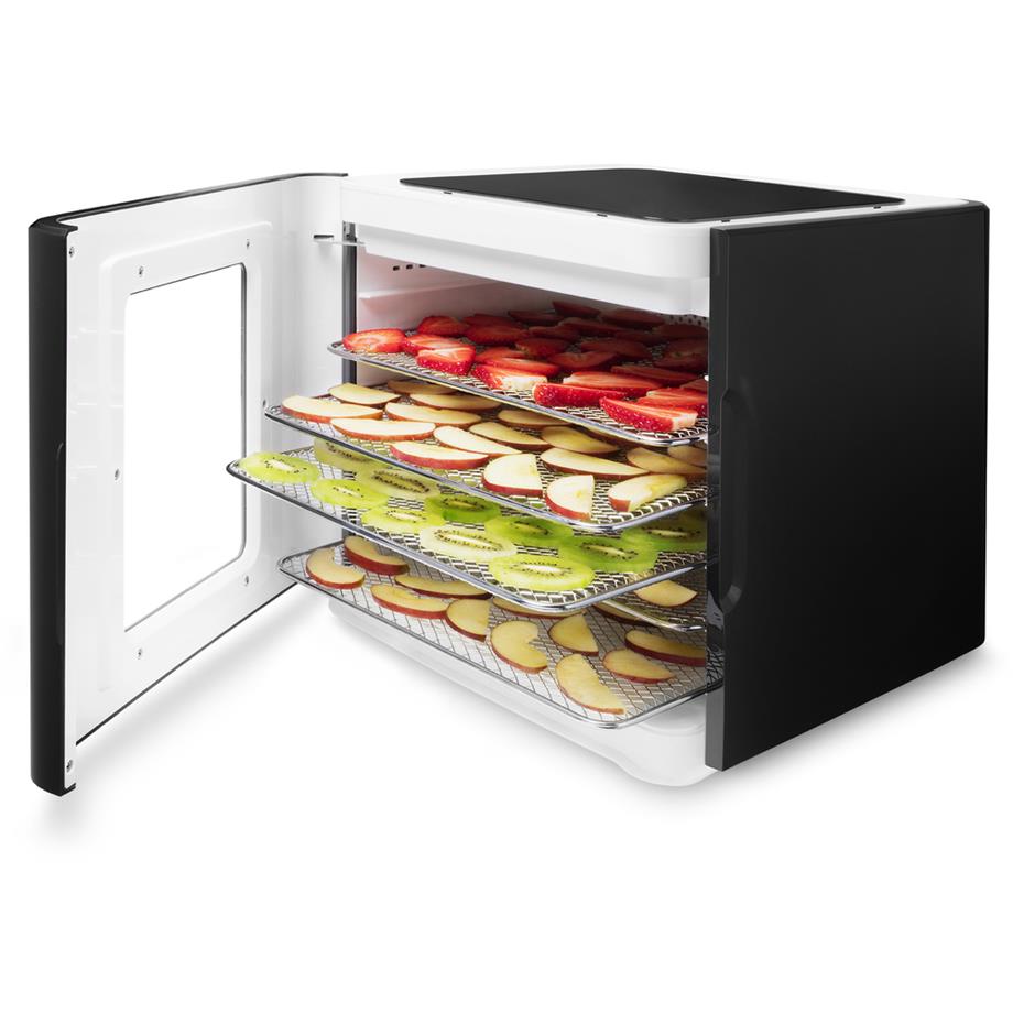 6 nerezových plat o velikosti 30 × 25 cm zajistí dostatečný prostor pro vaše sušení. Součástí sušičky je vyjímatelný tácek na zbytkovou vodu a případný nepořádek, který vznikne na dně během sušení. Tácek je snadno vyjímatelný, lze jej jednoduše umýt a opět umístit pro další várku sušení.