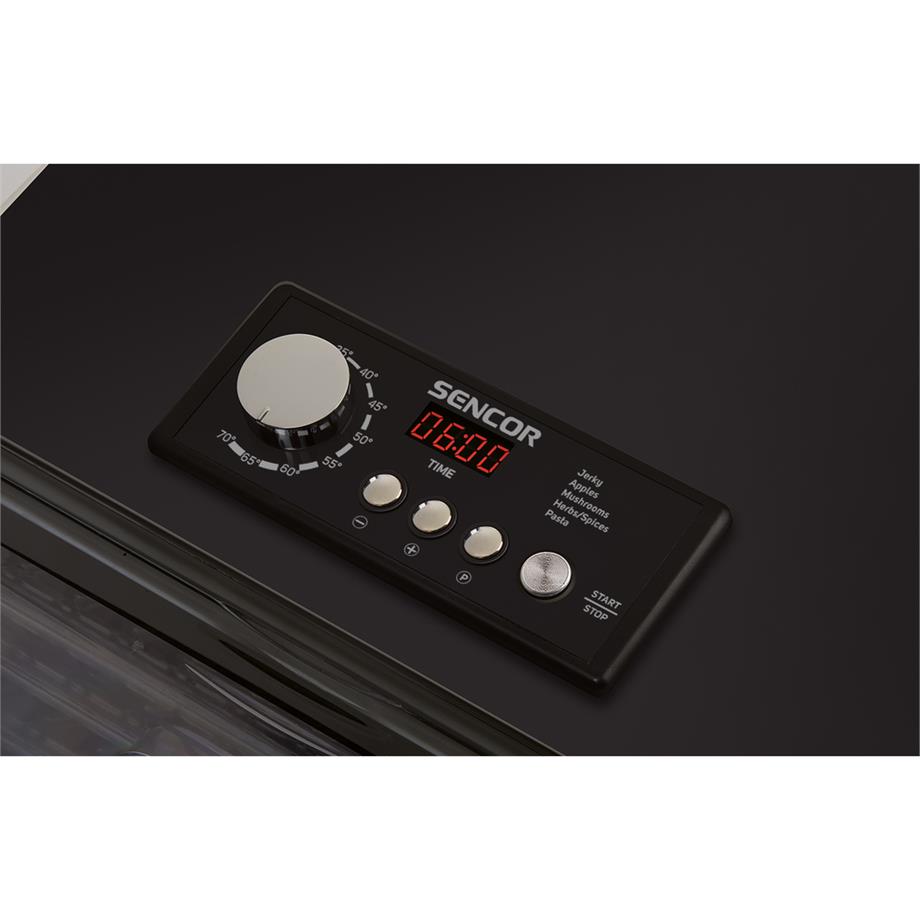 5 přednastavených programů se světlenými indikátory pro = sušené maso, jablka, houby, bylinky a těstoviny