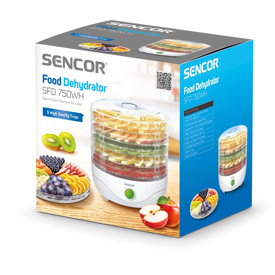 Sušička potravin v bílém provedení skvěle zapadne do každé kuchyně. Je vybavena pěti sušícími síty, na kterých lze usušit v podstatě cokoli. Sušit ale můžete i s jedním sítem a ušetříte tím mnoho prostoru.