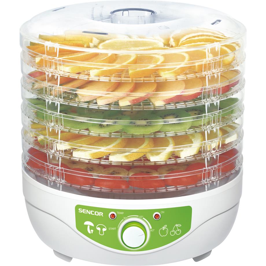 Sušička potravin v bílé barvě uchová výživové hodnoty i strukturu usušeného ovoce a zeleniny. Je vybavena 5 síty, na kterých lze usušit v podstatě cokoli.