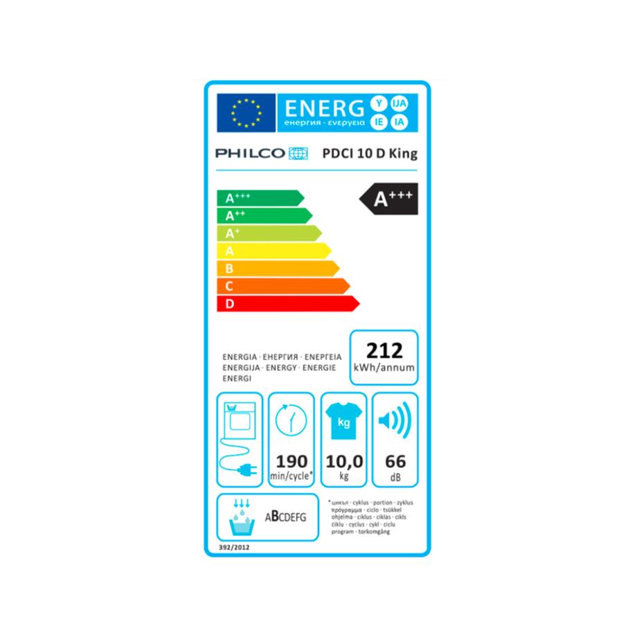 Kondenzační sušička s tepelným čerpadlem Philco PDCI 10 D King, v energetické třídě A+++, je určená pro sušení 10 kg prádla.