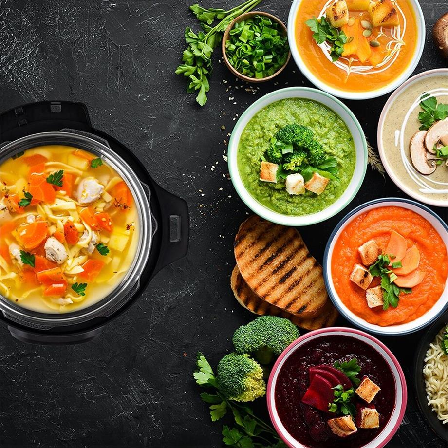 - 10v1: tlakový hrnec, pomalý hrnec, rýžovar, jogurtovač, vařič vajíček, ohřívač jídla, pánev na smažení nebo restování, napařovací hrnec, sterilizátor, hrnec na přípravu dušeného masa