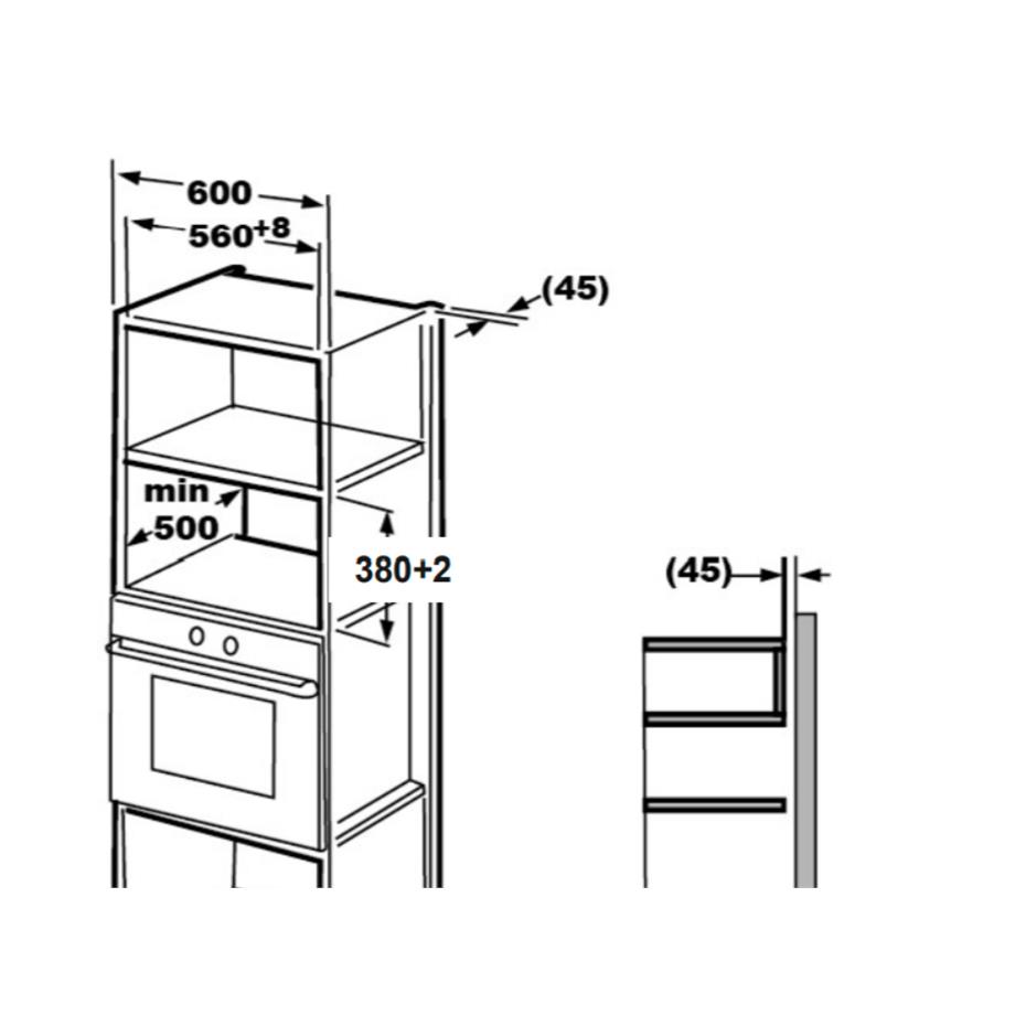vestavná mikrovlnná trouba • elektronické ovládání • výkon MW 900 W • výkon MW + horkovzduch 1 350 W • výkon gril 1 000 W • objem 25 l • průměr otočného talíře 31,5 cm • 5 úrovní výkonu MW • 3 úrovně grilu • 8 automatických programů – automatické nastavení času i výkonu ohřívání • displej • funkce Vaření – rozmrazení a ohřev jídla bez přerušování a nastavování • V × Š × H: 38,8 × 59,5 × 47 cm