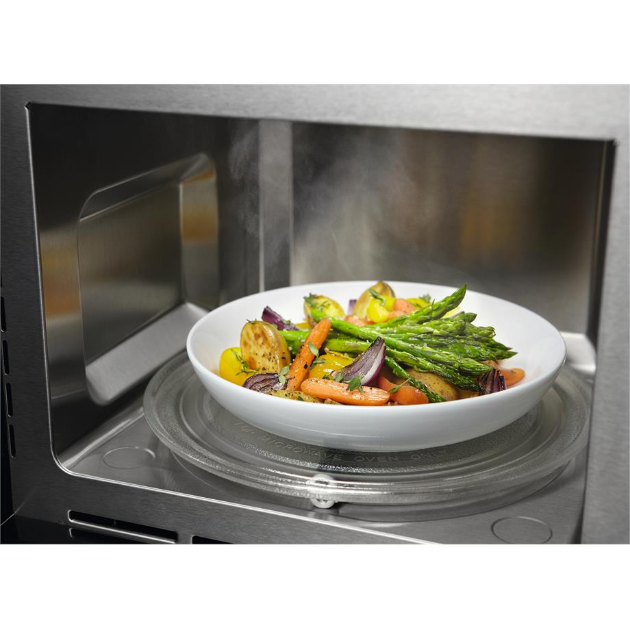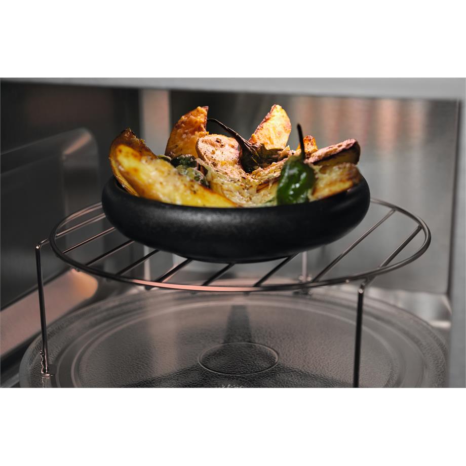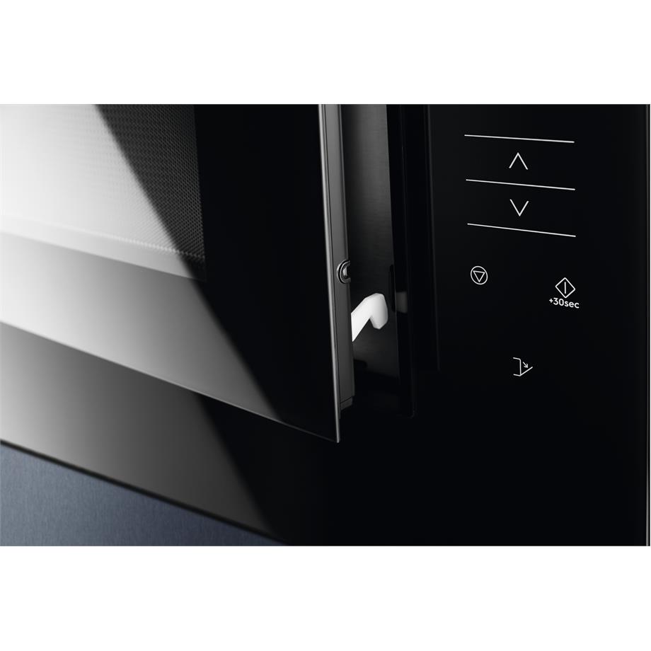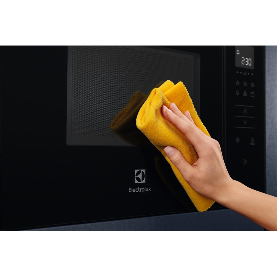 Vestavná mikrovlnná trouba s grilem a možností uložení oblíbených programů. Electrolux KMFD264TEX je vybavena automatickými programy vaření a rozmrazování podle váhy. Po ukončení přípravy se dvířka odblokují až ve chvíli, kdy je otočný talíř ve výchozí pozici.