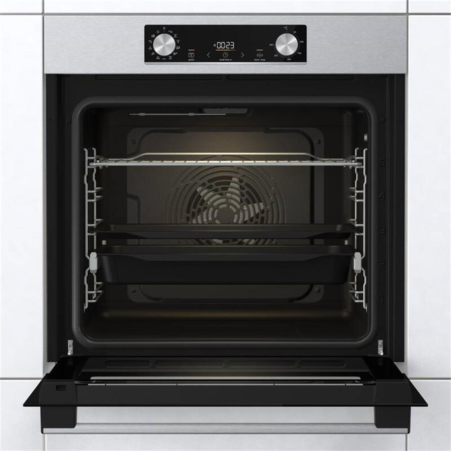 Dopřejte si perfektní pečení s troubou Gorenje BOS6737E09X ExtraSteam s parní funkcí. Trouba disponuje inovativním XXL prostorem pro pečení s kapacitou 77 litrů, je proto ideální i pro víceúrovňové pečení. Můžete tak využít celou šířku trouby pro plech s plochou 1 360 cm2. Kvalitní moderní trouba s výkonem 3,5 kW dosáhne teploty 300 °C. Pohodlné ovládání s ergonomickými tlačítky a displejem IconLed nabízí 11 programů. Trouba nabízí skvělé funkce jako AirFry pro mimořádně intenzivní pečení s horkým vzduchem nebo funkci StepBake, kterou si sami naprogramujete dle své potřeby.