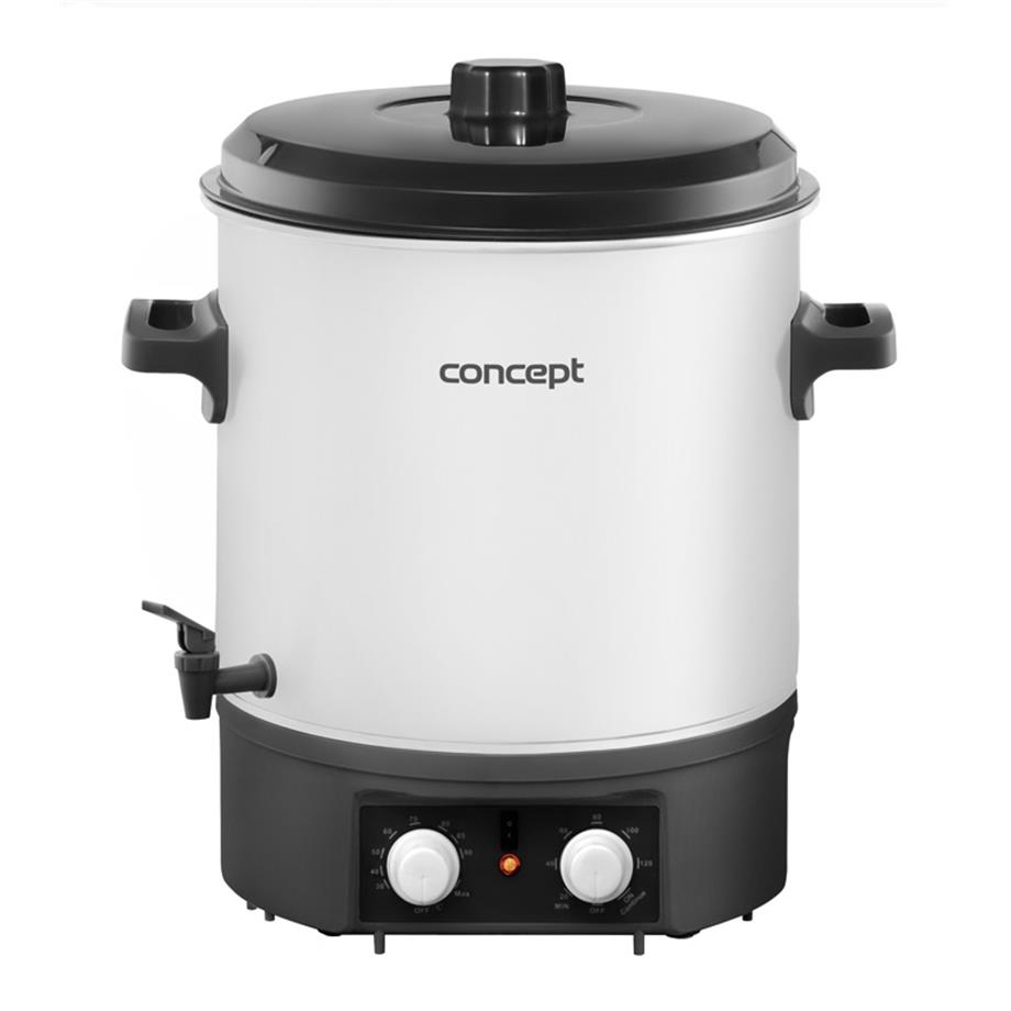Zavařovací hrnec Concept ZH0030 s objemem 27 l nabízí plynulé nastavení teploty v rozmezí od 50 - 100 °C a pomůže vám se zavařováním ovoce, zeleniny, hub i masa, výrobou šťáv nebo přípravou horkých nápojů. Je vybaven funkcí Keep Warm a časovačem.